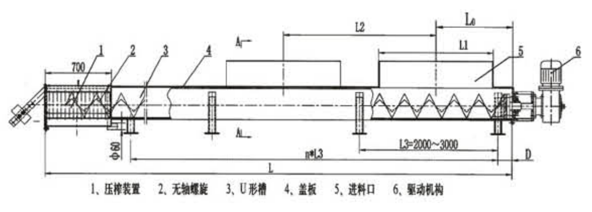 4、螺旋輸送機的高度提升(角度輸送)一般需另外建 立,即水平輸送段和傾斜輸送段各自完全分開。